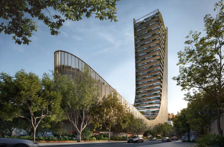 A resposta veio com um projeto de arquitetura considerado ousado pela empresa. A Benx pretende criar o que chama de uma escultura vertical, com uma fachada orgânica em curva, que lembra uma letra “J”.